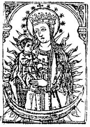 En esta ciudad ay un hermoso castillo, y de aquí torna hombre por santa María de Cernaday, que está a tres leguas de Damasco; y ay en esta Cernaday una hermosa yglesia, mas no es grande, la qual está encima de una roca y es muy lindo lugar que paresce castillo: aquí moran muchos monges negros y novayes, que son una condición de monges christianos. Y allí ay una bóveda debaxo de la yglesia donde tienen sus vinos, de los quales ay ende muy buenos; asimismo, en la yglesia ay un gran altar; en el muro de la dicha yglesia, ay una imagen de madera en una tabla, donde la ymagen de Nuestra Señora Sancta María fue en otro tiempo trayda pintada de color, la qual después se convertió en carne por milagro de Dios, mas de presente no se paresce sino muy poco de la imagen porque han puesto encima una losa de mármol blanco la qual está pendiente debaxo de aquélla.Y es de saber que esta imagen suso dicha por la gracia de Dios echa un licor que cae en una pila a gotas y el licor es casi semejante al azeyte, del qual licor dan a los peregrinos que ende vienen por quanto aquel licor viene por milagro y guaresce muchas enfermedades, y dizen que si es limpio y lo guardan por siete años se torna en carne y en sangre.