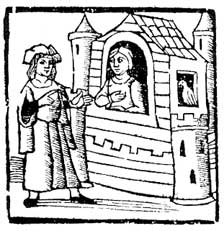 Y assí mismo, un hijo de un hombre pobre veló allí una vez a fin que pudiesse ser victorioso y astuto en las mercaderías y la muger se lo otorgó y assí llegó a ser el más potente y más rico de bienes temporales y el más nombrado mercader que pudiesse ser por mar y por tierra. Y otra vez un caballero del templo veló en aquel castillo, el qual demnadó que huviesse todos los días una bolsa llena de oro y la doncella se la otorgó, mas díxole que havía demandado destryución para su orden por la confiança de la bolsa y la gran soverbia que ellos ternían y que en ellas sería la destruyción. Y por tanto guárdesse quien aquí quiere velar, que no verá la gloria del Parayso.