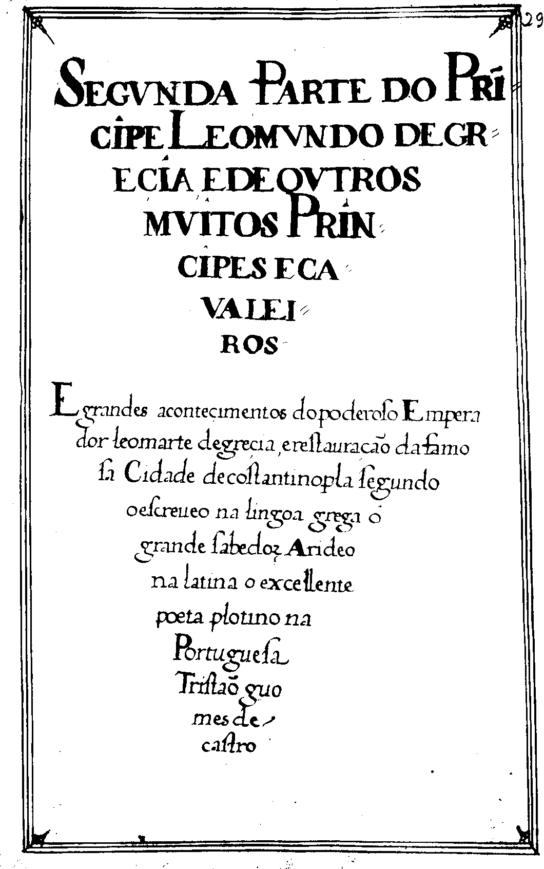 Gomes de Castro, Tristão: Leomundo de Grecia. Lisboa, Arquivo Nacional da Torre do Tombo, Manuscritos da Livraria, cod. 686.