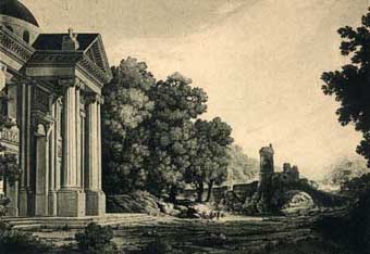 Ir a: Documento anterior Documento siguiente Índice decorados exóticos Documento: Paisaje (1) (Inédito), decorado de José Avrial. Fuente: Muñoz Morillejo, (lámina VIII, p. 281)
