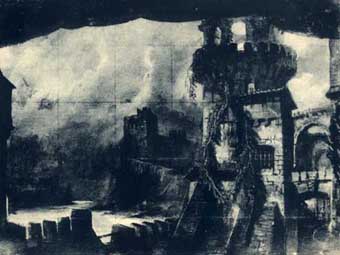 Ir a: Documento siguiente Índice decorado romántico Documento: El Trovador, decorado de Augusto Ferri Fuente: Muñoz Morillejo, (lámina XVIII, p. 137)