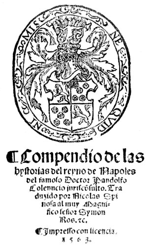 | Ejemplares: | VALENCIA. Universitaria, Z-9 I 30: enc. perg. Ex libris Academiae Valentinae legatis ab Exmo. D. Januario de Perellos, Marchione de Dos Aguas. - BARCELONA. Seminario Conciliar. - ÉVORA. Pública, Séc. XVI, Res. 846. - MADRID. Nacional, R-ll06. - PERALADA (GERONA). Castillo. - SAN LORENZO DEL ESCORIAL (MADRID). Monasterio, 20-VI-21. - VIENA. Nacional, 56.Z.51. - ZARAGOZA. Universitaria. | |||