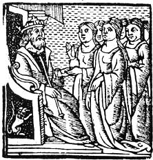 algunos estrangeros están delante el soldán, sus gentes