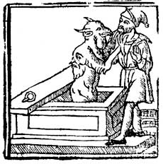 De la isla de Rodas y de una cabeça de un hombre que salió del sepulchro de una donzella.